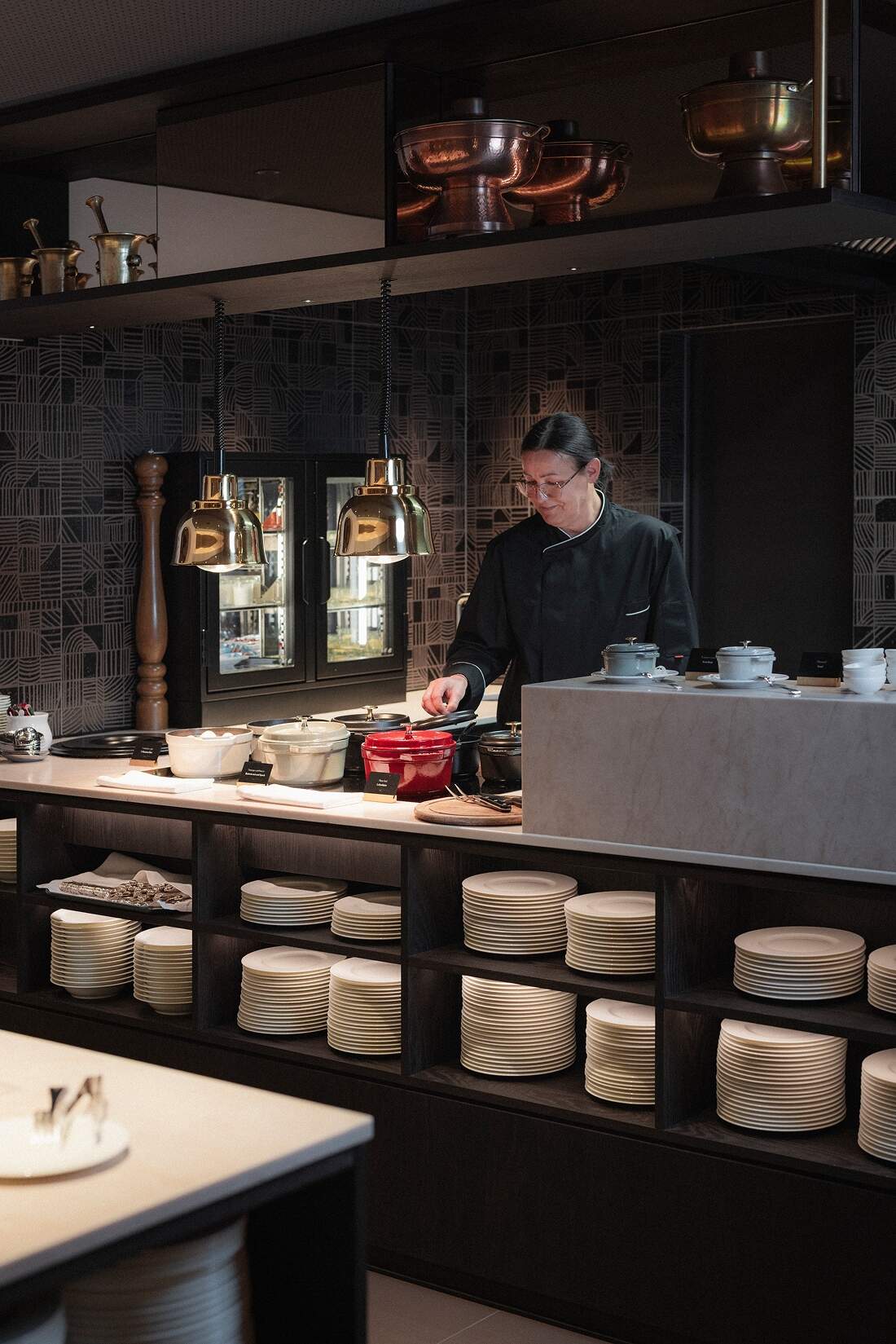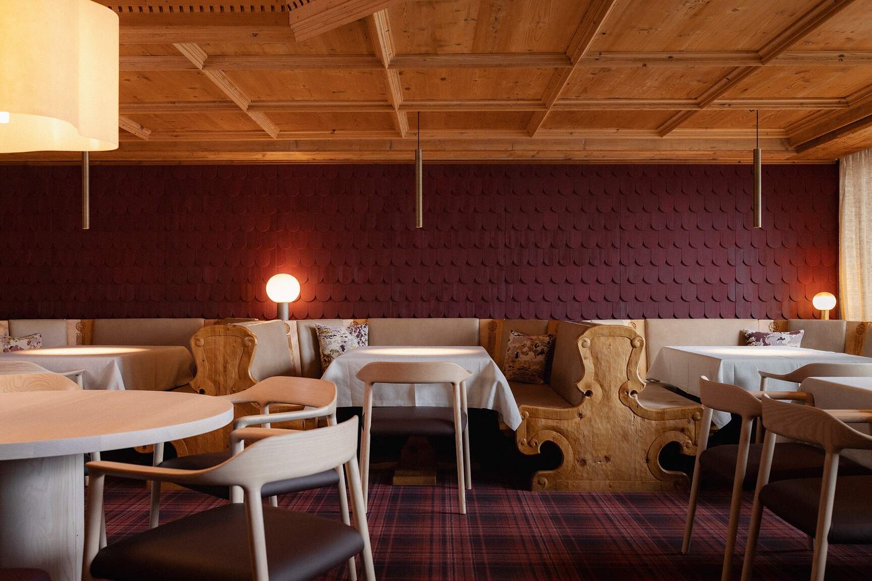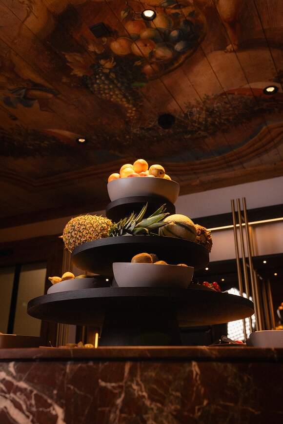 Ziel war es, die Lobby zu beleben und sie zu einem flexiblen und ansprechenden Bereich zu machen. Dabei wollten wir den ursprünglichen Charme der BURG bewahren und durch mutige Farben und Materialien ergänzen. Ein klares Layout, neue Beleuchtung und flexible Möbel bieten nun Raum für Rückzug und Austausch. Und während der große zentrale Kamin Wärme spendet, spendet der »Press for Champagne« Button der neuen Bar kalten Sprudel auf Knopfdruck.